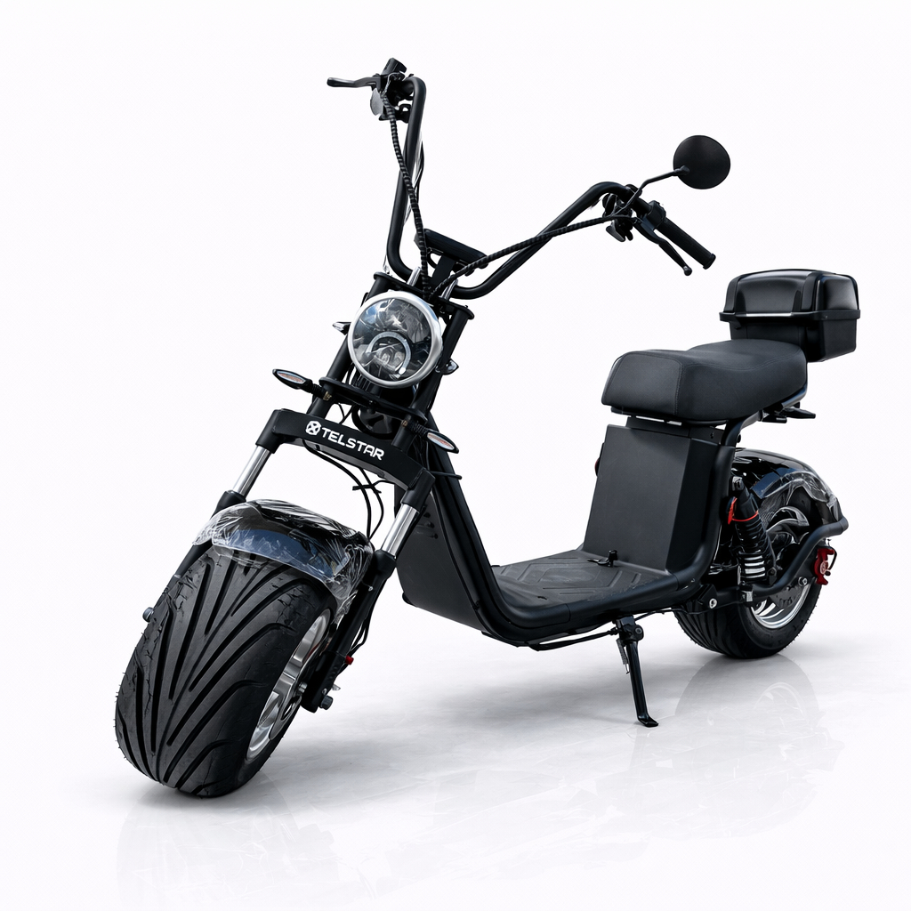 Нов модел електрически скутер BIG CITY HARLEY Х20 с двойна седалка, предни и задни амортисьори, мощен 3000W безчетков мотор, новият LED фар, голям LCD екран, аларма, защита против кражба, дистанционно, дискови спирачки, пълна светлинна окомплектовка + CE и EEC сертификат.