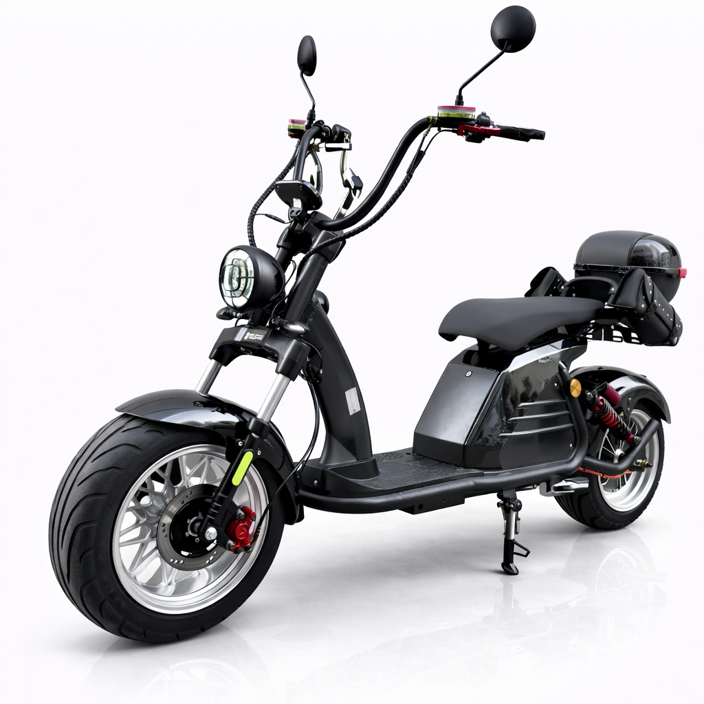 Нов модел електрически скутер BIG CITY HARLEY X6 ULTRA SPORT CE 60V 35Ah 4000W УСИЛЕНА РАМКА + гуми с по-голям диаметър + по-мощен двигател с двойна седалка, предни и задни усилени амортисьори, мощен ПОДОБРЕН 3000W безчетков мотор, голям LCD екран, аларма, защита против кражба, дистанционно, GR дискови спирачки, пълна светлинна окомплектовка + CE и EEC сертификат.