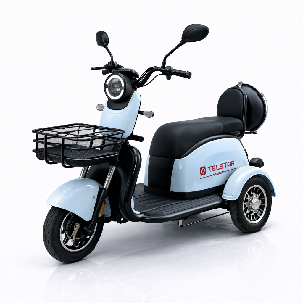 Електрическа триколка 2+1 750.1 ТИП VESPA STYLE с диференциал Нов модел, голяма равна седалка, подходяща и за по-едри хора, за един или за двама човека + малка детска седалка, високопроизводителни батерии от последно поколение BLACK GOLD с увеличен капацитет.