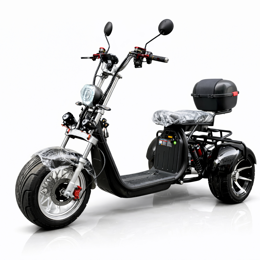 | Допълнителна информация | Алуминиеви джанти – дизайн 2026 г. Предни хидравлични и задни шокови амортисьори с адаптивно окачване Двойна задна седалка Преносима батерия в куфарче Клаксон LED стоп светлина LED мигачи LED габарити LED преден фар Усилена задна кошница Специално зарядно за батерията 2 броя LED фарове тип „лупа“ 2 броя дистанционни с аларма и безконтактно включване |