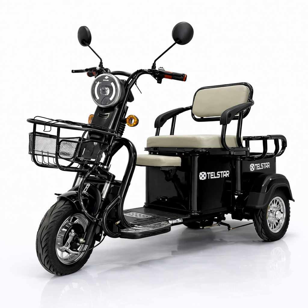 Електрическа триколка TS-750++ CARGO 60V 2000W Нов модел 2026 със задно предаване с диференциал и алуминиеви джанти. Високопроизводителни батерии от последно поколение BLACK GOLD с увеличен капацитет.