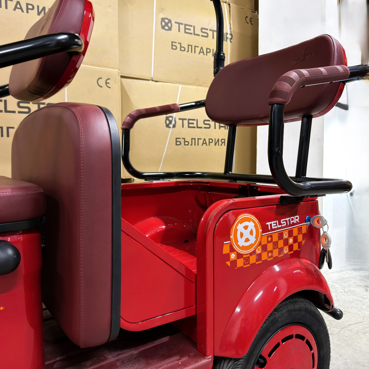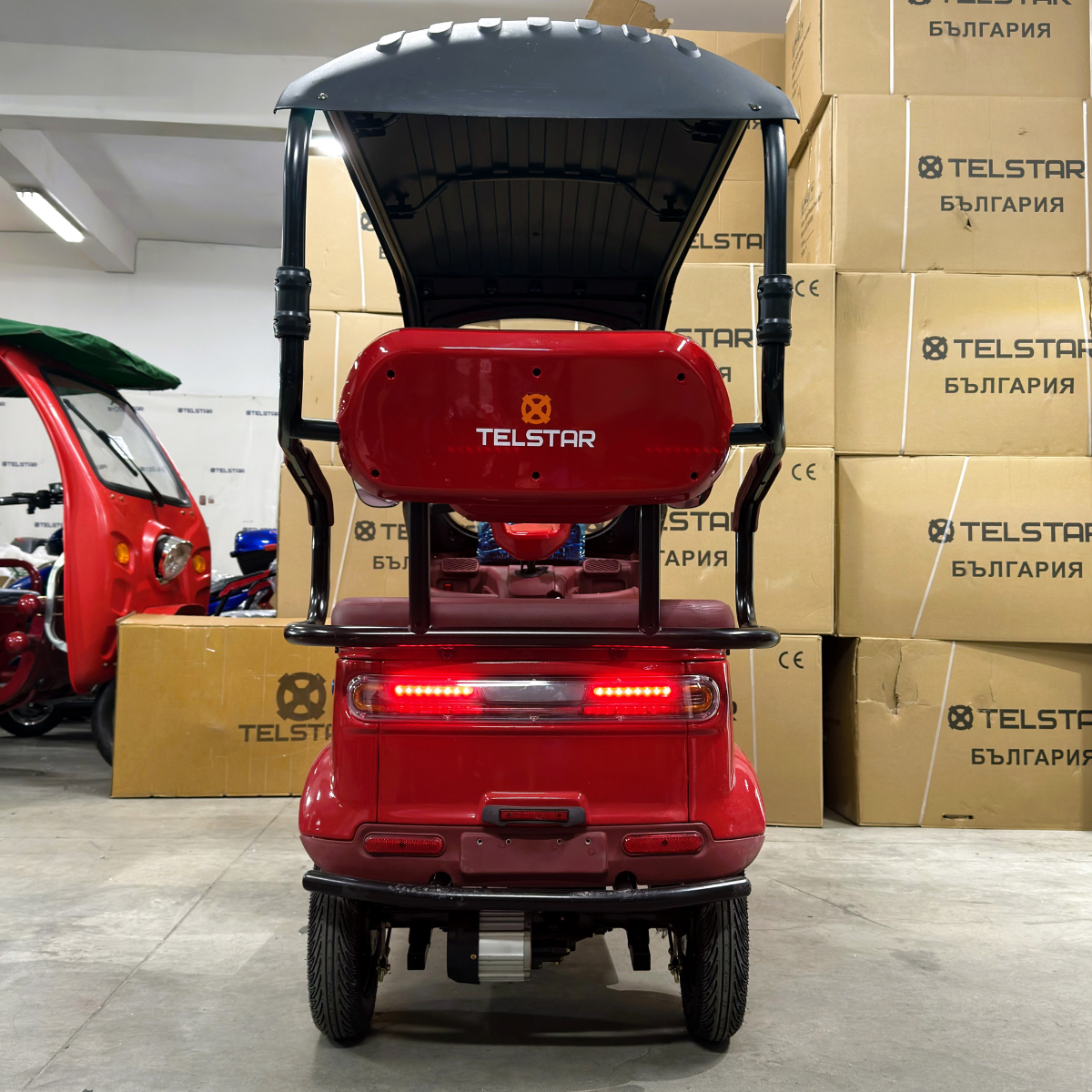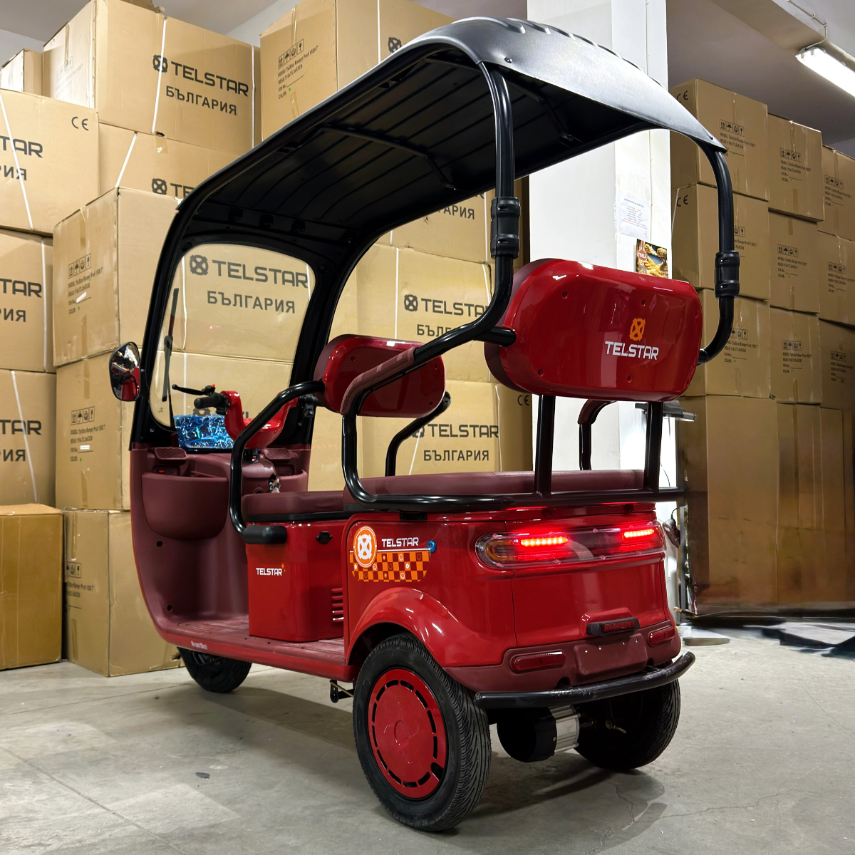 Задната седалка се превръща в удобно багажно отделение с 1 движение. Прахово нанасяне на боята по електролитна технология. Триколката се предлага с лесна за монтаж и демонтаж покривна конструкция.