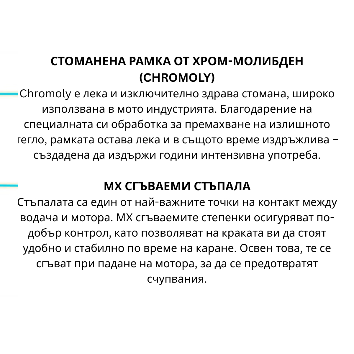 - Два пъти по-силен от стандартните 49cc мотори. Достатъчно мощен да тегли и възрастен, подходящ за следваща стъпка към истински кросов мотор.
