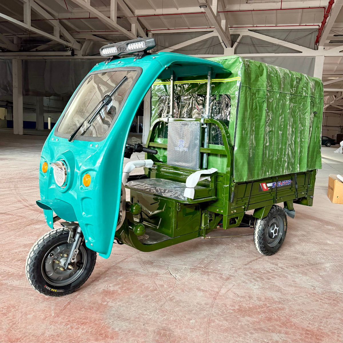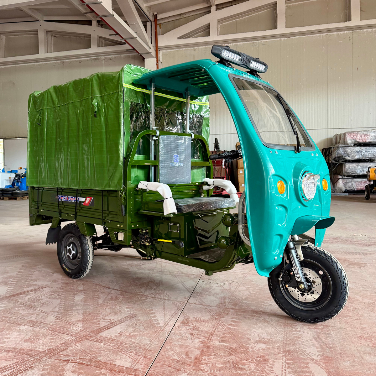 Карго транспортер T-1000 2000W / MAX 3000W 60V 50Ah с до 1000 кг товароносимост . С всички Европейски сертификати - TUV , EEC , CE , CCC , COC , ROHS (по желание може да се регистрира с номера да се кара в централните градски части). Високопроизводителни батерии от последно поколение BLACK GOLD с увеличен капацитет.